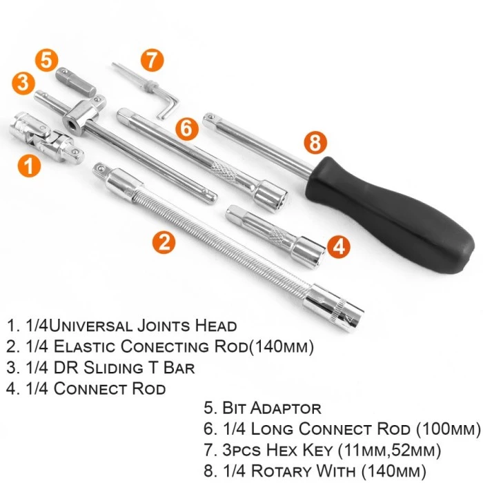 - 1 Pcs 1/4 "DR Sliding T Bar